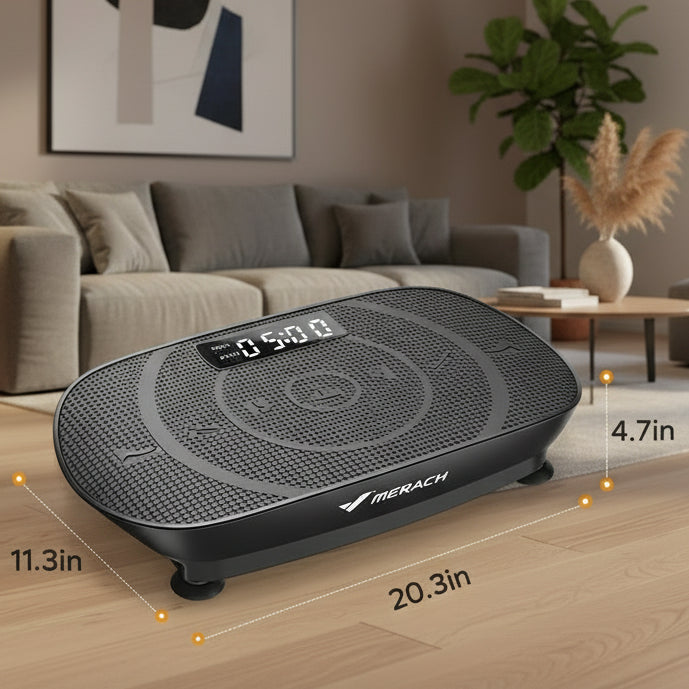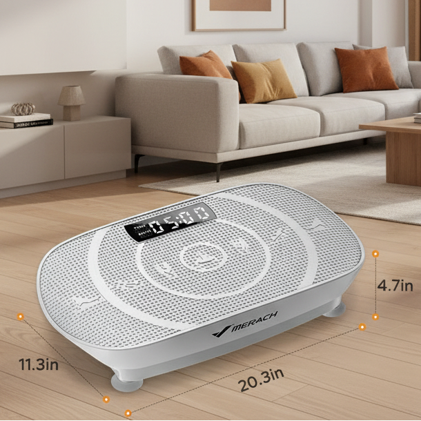 De MERACH Vibration Plate is een krachtige, compacte trainingsoplossing voor iedereen die thuis efficiënter wil sporten. Met hoge-frequentie vibraties stimuleert dit toestel je spieren, verbetert het je bloedcirculatie en versnelt het je vetverbranding – allemaal in slechts enkele minuten per dag.